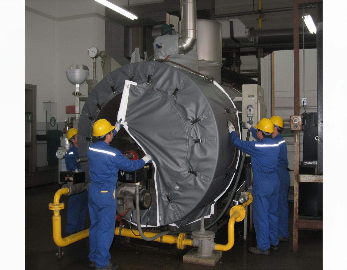 En las calderas, las chaquetas de aislamiento Thermatron se colocan sobre la carcasa y puntos singulares donde se producen mayores pérdidas térmicas. El problema principal es la pérdida de energía por las superficies calientes y el riesgo de quemaduras para el personal de mantenimiento. Al instalar chaquetas Thermatron se mejora el rendimiento energético de la caldera y se aumenta la seguridad, reduciendo la temperatura de contacto sin dificultar el acceso para revisiones.