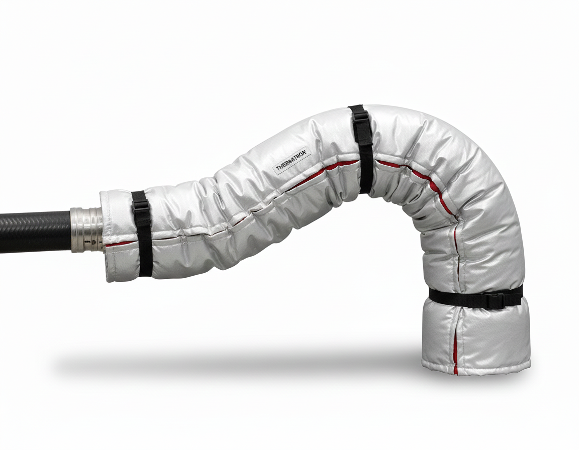 La solución Thermatron para latiguillos y mangueras flexibles que transportan fluidos a alta temperatura se basa en chaquetas textiles flexibles y desmontables, diseñadas para ajustarse con precisión a su geometría, incluso en tramos móviles o de curvatura variable. Dado que estos conductos pueden operar a temperaturas muy elevadas, se emplean materiales técnicos específicos capaces de soportar condiciones exigentes y salpicaduras de fluidos calientes, garantizando resistencia, durabilidad y una protección térmica efectiva. Este tipo de aislamiento reduce el riesgo de contacto accidental para los operarios, disminuye notablemente la disipación de calor hacia el ambiente y contribuye al ahorro energético global del sistema, manteniendo al mismo tiempo un acceso rápido para inspecciones, sustituciones o tareas de mantenimiento sin necesidad de detener el proceso.
