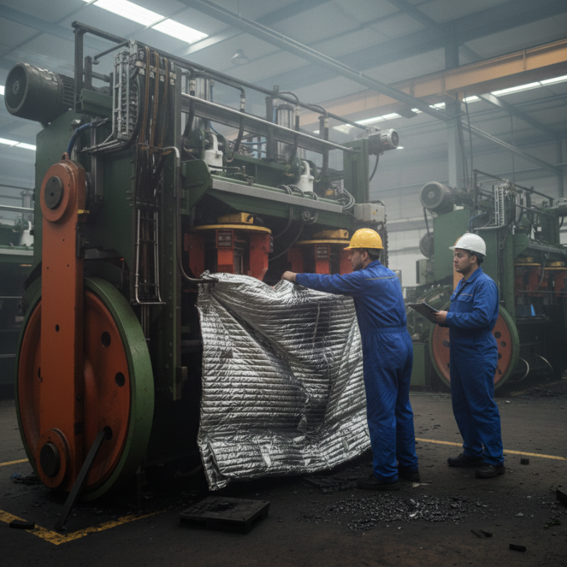 En las prensas de vulcanizado, especialmente en aplicaciones del sector del neumático, las superficies exteriores y los componentes críticos pueden alcanzar temperaturas muy elevadas, generando pérdidas de calor significativas y creando zonas calientes difíciles de controlar. La geometría compleja de las prensas —platos, marcos, cilindros y elementos móviles— hace que el aislamiento con soluciones rígidas tradicionales resulte poco eficaz, ya que no se adaptan bien, dificultan el mantenimiento y aumentan los tiempos de parada.